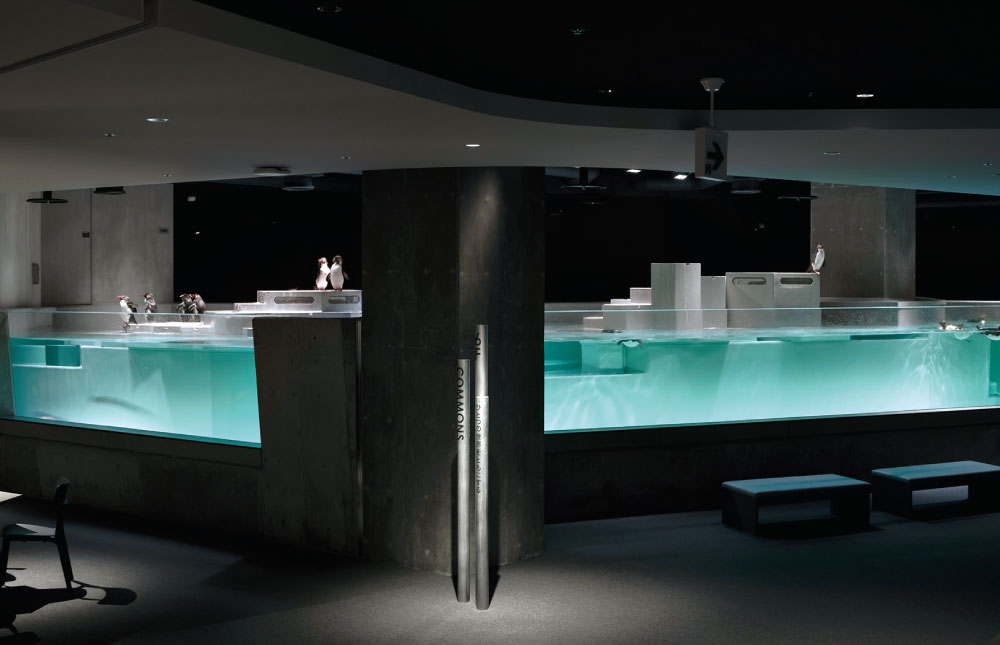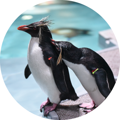 ペンギンの行動量を増やすため、六角形のブロックを組み替えられる世界初* のオープン型水槽を導入し、22 時までの営業に合わせてナイトタイムが訪れる照明プランに。1日を通じて、また四季を通じて変化するペンギンの群れを、息づかいが感じられるほど近くで観察できます。