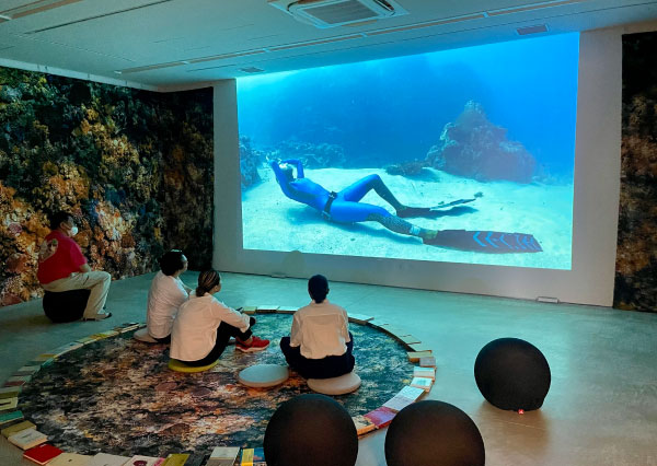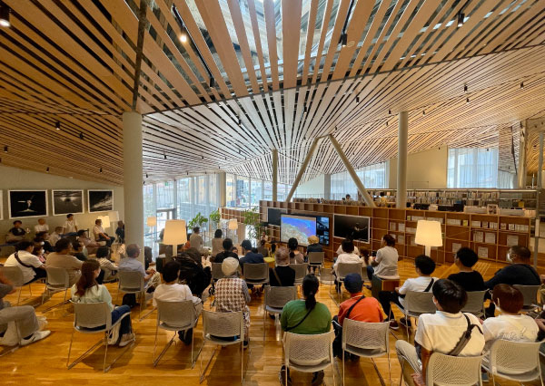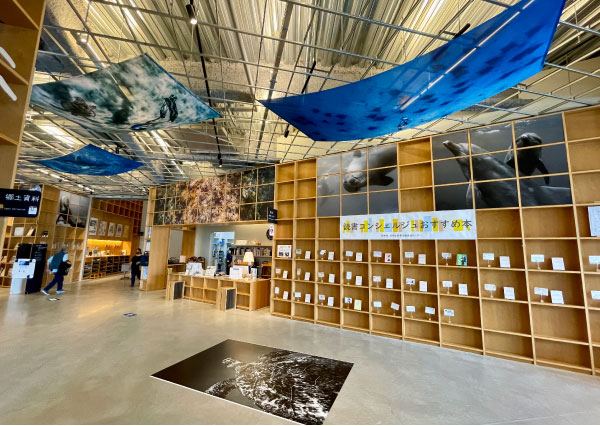 香りは素敵なコミュニケーションのツールとして言葉では表現しにくいメッセージを伝えてくれます。那須塩原図書館みるるでは、水族表現家 二木あいさんの展示を五感で行い、Mother Oceanという香りを制作しました。Mother Oceanの香りは那須塩原の市役所を始め地域で情報を発信している色々な拠点に設置され、香りと共に図書館での展示を広く発信しています。(那須塩原図書館みるる 二木あい展の様子)
